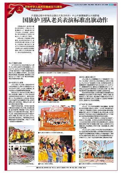 升国旗过程中,标准的出旗仪式是怎样的?日前在中山市黄圃镇中心广场隆重举行的“不忘初心 牢记使命”庆祝中华人民共和国成立70周年文艺晚会上,广大群众开了眼界。