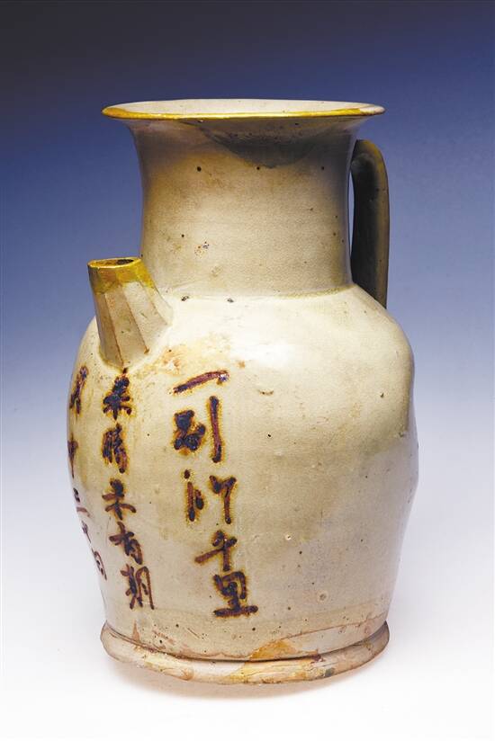 ■唐长沙窑瓷壶 【一别行千里,来时未有期。月中三十日,无夜不相思。】 |