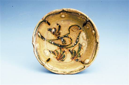 ■唐长沙窑青釉褐绿彩花鸟纹瓷盘 |