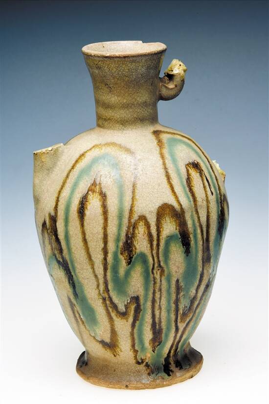 ■唐长沙窑白釉褐绿彩瓷壶 |