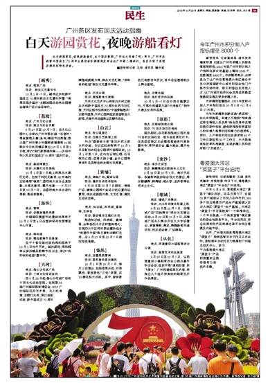 白天游园赏花,夜晚游船看灯,这个国庆假期,广州也太好看了吧!昨日,广州市庆祝新中国成立70周年主要活动安排新闻发布会在广州塔二楼举行,各区介绍了其国庆期间的特色活动。