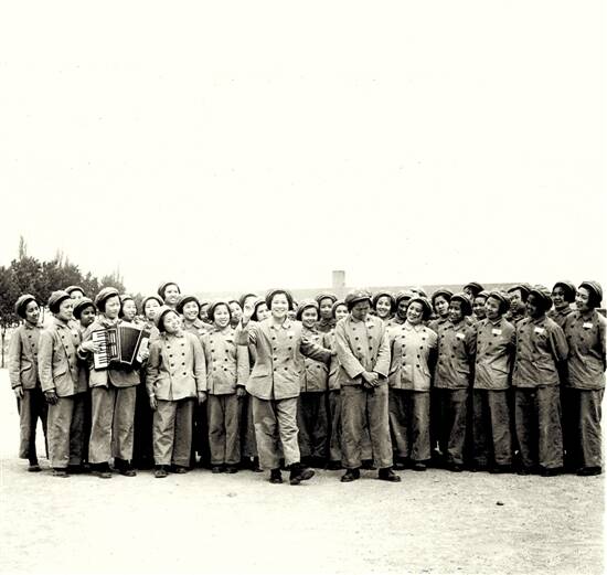 ■1954年夏天,“航中五班”演唱《瓦夏,好瓦夏》。每位女战士的脸上的笑容都那么灿烂、投入与真挚。展览主办方供图。 |