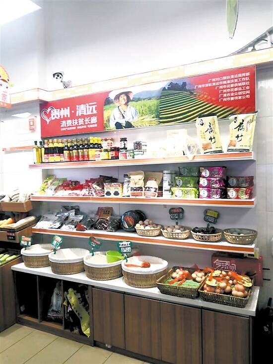 ■花都“善待家超市”里设立的清远扶贫产品展销点。 |