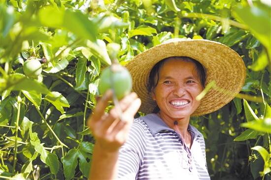 ■贫困户邓红英在百香果园基地务工,因吃苦耐劳被升为小组长。除了工资每月还有300元奖励。 |