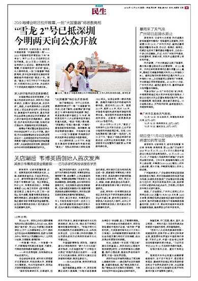“雪龙2”号已抵深圳 今明两天向公众开放