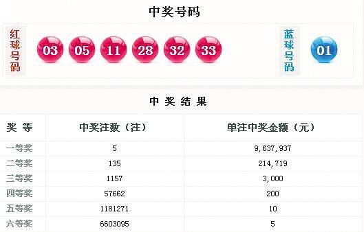 新快报讯 记者陆妍思报道 10月13日晚,双色球进行第19117期开奖,全国共送出5注963万多元一等奖,其中广东中出1注落户潮州,由一张924元的“11+1”复式票所中,单票总奖金达到976万多元。 潮州924元复式建功 第19117期双色球的开奖号码为:红球“03、05、11、28、32、33”;蓝球“01”。 当期红球号码大小比为3:3,三区比为3:0:3,奇偶比为4:2,开出一枚重号“33”,一枚隔码“11”,同时开出一组二连号“32、33”及一组同尾号“03、33”;蓝球则开出上期重号“01”。 当期一等奖中出5注,单注奖金963万多元。这5注一等奖花落5地,北京、福建、广东、四川、陕西各中出1注。 记者从广东省福彩中心获悉,广东新鲜出炉的头奖落户潮州,中奖彩票是一张924元的“11+1”复式票,由潮安县凤塘后陇路口新和路段的44190229投注站售出,加上小奖,单票总奖金达到976万多元。 奖池上涨至10.85亿 同期二等奖中出135注,单注奖金21万多元。其中,浙江、福建分别中出16注,河南中出11注,广东、海南各中出10注,此外,其他地区二等奖均低于10注。当期末等奖开出660万多注。 当期全国销量为3.58亿多元。广东继续以4576万多元高居销售榜首。开奖后,双色球奖池上涨至10.85亿多元,下期彩民2元单倍投注最高仍中得1000万元奖金。