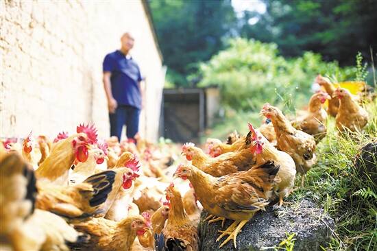 ■罗石生给养殖的生态鸡申请了“岭头鸡”商标,成为泰东村的“一村一品”代表。 |