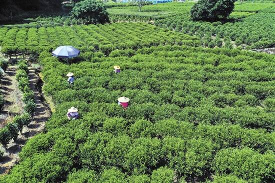 群山环抱的新塘镇顶厝村,一片片绿油油的茶园,身在其中,陶醉其中。 顶厝村是一个纯农山区村,全村总面积5.35平方公里,全村总户数494户,约有2100人。截至今年7月,顶厝村有建档立卡贫困户48户共120人。 在很多人的印象中,山区发展困难,意味着落后。可是在驻村第一书记吴志鹏看来,这里却遍地是宝。近几年来,中山市东凤镇政府、潮州市农业农村局的驻村干部与村两委干部走遍村里每个角落,就如何把“绿水青山”转化为“金山银山”,走出世代贫穷困局进行深度探讨,广集民意,确定了“农业产业+红色文化+乡村旅游”的发展思路。 ●种茶致富 推动茶叶产业化 在潮汕地区,人们每天都离不开茶,茶叶的需求非常旺盛。吴志鹏以及潮州市农业农村局驻村党建指导员刘海朝等人,经过调研,发现顶厝村距离潮州著名的凤凰山脉较近,非常适合种产值较高的茶叶。 为此,扶贫工作队鼓励村民特别是贫困户通过种茶致富,目前全村的茶叶种植面积已经有1500多亩。能产茶叶的土地,成了这里最大的“宝”。 记者一行来到贫困户、茶农陈乌毛的茶园时,一股茶香迎面扑来,陈乌毛正跟请来的两个村民起劲地摘茶青。据介绍,陈乌毛的丈夫患有残疾,孩子又外出打工,家里还有两个正读小学的孙子需要照顾,因此她家属于缺乏劳动力的贫困典型。 扶贫工作队了解到她家的情况后,鼓励她将山脚下原先一片稻田改种经济效益高的单丛茶叶。为了尽量减少她种茶的压力,扶贫工作队还请人对她进行技术培训,给她免费发放肥料,而销路更不足为虑,一到收成时,自然有凤凰地区的茶商过来收茶。 据村两委的顾问林镇如介绍,像这样的茶园,一亩一次就能收成300多斤茶叶,一年可收成两三次。茶叶的价格根据品种和季节的不同也略有不同,现在这个季节一斤茶青能卖到12元。总体算下来,像陈乌毛这样的茶农,一年收入几万元是不成问题的。 茶农林志强家也是贫困户,家里有六口人,三个孩子都在读书,家里还有一位80多岁的老父亲,妻子则只能打散工。 扶贫工作队除了鼓励他种植5亩单丛茶外,还帮他申请了小额贷款,购买制茶设备。林志强的小店就在进村的路边,在店里,记者品尝了一杯当地名茶“鸭屎香”,茶味香醇,口齿留香。 据介绍,在潮汕地区,有名的“鸭屎香”一斤可以卖到两三百元,林志强卖出的价格一斤不到两百元,因此很是热销。据介绍,林志强一家光卖茶这项收入,一年就有四五万元。 通过茶叶增收,扶贫工作队还有更大的目标。吴志鹏介绍,他们正在村里推动茶叶产业化。目前,他们通过流转村民承包地经营权,打造了规模化有机生态茶园基地,免费为全村茶叶种植户发放有机农药和生态化肥,以发展无公害的有机生态茶。通过置换,盘活村民老旧房屋来建设厂房,准备引进现代茶叶加工机械,预计年底投产。 此外,通过商标注册、茶叶罐外包装设计,打造本村专属茶叶品牌。通过搭建“邮乐购”电商平台,打通线上线下销路。 新快报记者进村采访的当天,顶厝村党总支书记林卫民刚从四川的展销会回来,对于未来茶叶产业的发展,他满是信心。 为了帮贫困户脱贫,扶贫工作队还通过入股的方式,积极鼓励当地发展特色产业:包括饶平县食来运转生态园、黑山羊养殖项目、大棚蔬菜种植项目等等,每年都有固定收益分给贫困户和村集体。 ●生态旅游 吃住玩一应俱全 新业态带来新希望 顶厝村是一个古老的村落,还是当年革命家毛泽覃带领的游击队休整的地方。此外,顶厝村还拥有百花洞、将军陂、林一铭石刻、千年古榕树等文化自然景点,颇具特色。 为此,扶贫工作队和当地村两委决定好好发展生态旅游,并利用文化引领助力脱贫攻坚。 林镇如带着新快报记者一路参观,他介绍说,村里的红军游击队饶平遗址目前已成了新塘镇的红色文化教育基地和重要的党建活动基地,经常有游客过来参观,也有党支部过来这里搞活动,人气非常旺。村里的古村石道、古榕树和一些“土角厝”(以前用土砖砌成的房子)都有几百年的历史,这里正成为人们了解历史、旅游打卡的地方。 有得玩,更要有得吃、有得住,才能留得住游客。 在顶厝环境优美的茶园旁边,有个食来运转生态园,里面可供两三百人就餐,此外还有三间客房。 记者发现,这里经营的都是潮汕本地的菜式,菜品非常丰富,餐桌上的美食令人垂涎欲滴。目前生态园的经营已经外包出去,每年的租金可用来补贴贫困户和村集体。生态园里,还有一些公益性岗位供村里贫困户打工。 目前,扶贫工作队和村两委正积极申报广东省重点旅游帮扶村,计划将这里打造成休闲观光、茶文化体验为一体的生态旅游线路,通过“吃住在乡村”促进农副产品与乡村旅游结合,稳步推进生态旅游带动增产增收。 据介绍,经过几年的努力,顶厝村2018年贫困户人均年可支配收入达到10800元,同比增长22%,全村48户贫困户已全部脱贫。