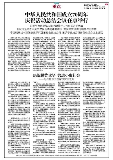 中华人民共和国成立70周年 庆祝活动总结会议在京举行