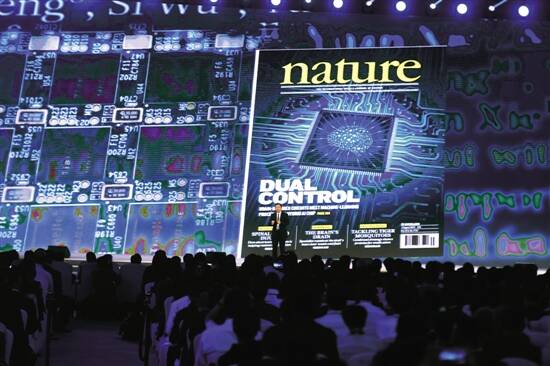 ■昨日,15项世界互联网领先科技成果在浙江乌镇召开的第六届世界互联网大会上发布。清华大学代表在介绍“面向通用人工智能的异构融合天机芯片”。新华社发 |