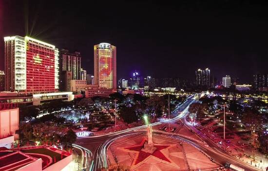 ■今年国庆节期间,广州市海珠广场周边建筑披上了红妆。 |