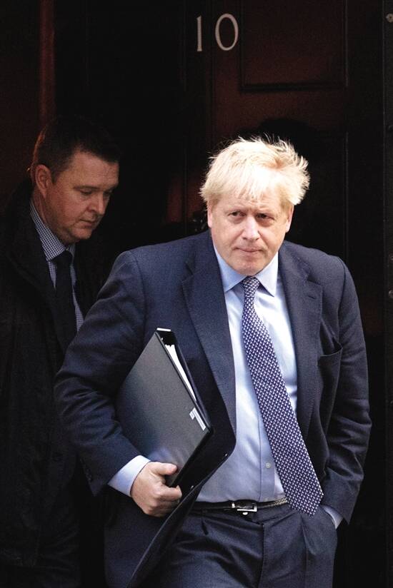 ■当地时间2019年10月19日,英国伦敦,英国首相约翰逊离开唐宁街前往英国议会下院,他将就新的脱欧协议在议会下院进行辩论。 VCG供图 |
