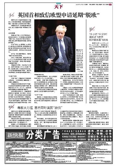 据新华社电 英国首相鲍里斯·约翰逊19日致信欧洲联盟,申请英国延期脱离这一地区组织,但他没有在信中署名。