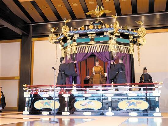 据新华社电 日本德仁天皇22日在皇居正殿“松之间”举行了“即位礼正殿之仪”,正式宣告日本第126代天皇即位。 “我愿一直为日本国民及世界之和平而祈愿。亲近国民、遵守宪法,为做好日本国家及日本国民的综合象征而尽职尽责。”当日下午,日本德仁天皇在登上位于“松之间”内的紫色宝座“高御座”后宣读了即位誓言。 当天下午1时,德仁天皇身着传统装束“黄栌染袍”登上了“高御座”。“高御座”旁边,雅子皇后站在紫色宝座“御帐台”之中。秋筱宫亲王夫妇等成年皇室成员也身着传统服饰站在“松之间”殿内参加了即位仪式。上皇(明仁天皇)夫妇未参加。 德仁天皇宣读完即位誓言之后,日本首相安倍晋三身着黑色燕尾服向天皇宣读了贺辞,并三呼“万岁”。正殿之外礼炮齐鸣。 据日本宫内厅介绍,新天皇即位仪式,需要经过“剑玺继承之仪”“即位礼正殿之仪”“祝贺御列之仪”等重要流程。今年5月1日,新天皇德仁举行了“剑玺继承之仪”,正式继承了象征皇位的三种神器以及国印和天皇御玺等。原定22日当天下午开始的巡游等“祝贺御列之仪”,因处理强台风“海贝思”灾情而延期至11月10日举行。 22日晚间还将举行新天皇即位“飨宴之仪”,届时天皇夫妇和皇室成员将与外国元首等宾客一同用餐。 据宫内厅介绍,有来自194个国家及联合国、欧盟等组织的代表共2000余人参加了此次即位仪式。