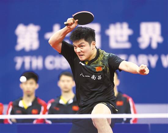 “很开心今天能够获得冠军,这是团队共同努力的结果。”走出赛场,樊振东说,“在场上,今天每个人或多或少都遇到了一些困难。但是,大家在赛前也把这些可能的困难都估计到了,所以在遇到困难的时候也没有慌或者放弃,体现了我们军人的战斗力。我觉得我们的团队非常棒。” 赢得比赛的过程中,确实遭遇了一些波折。第一场第一局,面对朝鲜队队员韩宇宋,樊振东以9∶11告负;第二局,比分来到8∶10时,韩宇宋又一次拿到局点,不过,樊振东连追4分,逆转取胜。随后,樊振东又取得第三、四局的胜利。 “其实一上来发挥还算比较正常,但是第一局可能对方发挥得非常好,我有几个球处理得不是特别合理,输掉以后,整个局面还是显得偏紧一点。”复盘比赛,樊振东告诉记者,第二局8∶10落后时,“因为是自己发球,就想着去把那两个发球发好,并没有想太多别的。连赢4分以后,我觉得整个局面就会看到很大的转机了。” 中国队主教练王涛说,赛前已经“做好了最困难的准备”。“第一场第一局输了以后,第二局8∶10落后的情况下,樊振东能够翻盘,这奠定了我们全队的胜利。我觉得作为一个主力队员,到了要扛起大旗的时候,遇到多大困难时候都能够顶得住,就是一个优秀的运动员。今天樊振东做到了。”