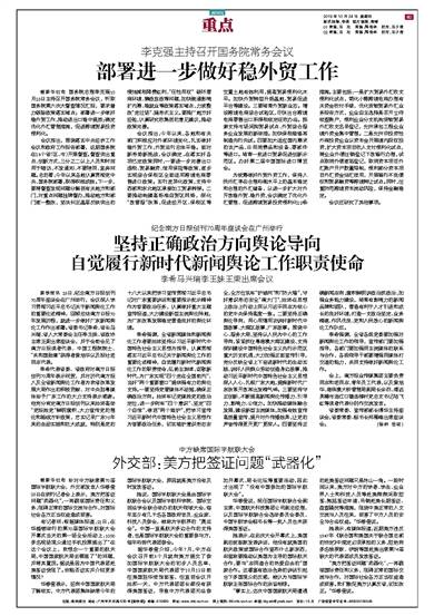 据新华社电 针对中方缺席第70届国际宇航联大会,外交部发言人华春莹23日在例行记者会上表示,美方把签证问题“武器化”,一再藐视国际责任和义务,阻碍正常的国际交流与合作,对国际社会各方正当