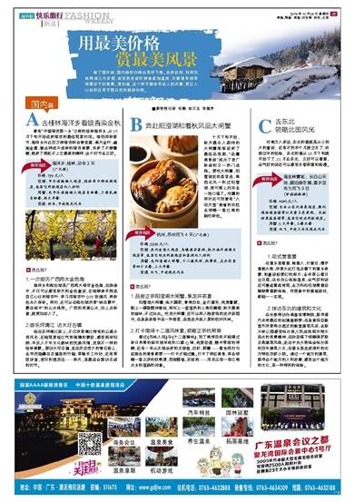 除了国外游,国内游的价格也有所下降。此时此刻,利用双休再凑几天年假,或觅秋色或叹美食或泡温泉,无疑是有钱有闲最该干的美事。要知道,这个时节都各有动人的风景,更让人心动的还有节假日后的旅游价格。