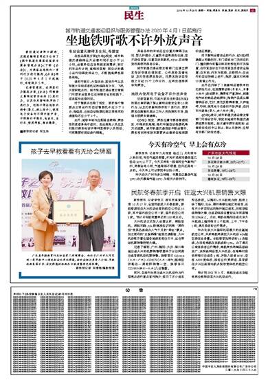 新快报记者昨日获悉,交通运输部官网近日公布了《城市轨道交通客运组织与服务管理办法》(下称《办法》),对乘客在地铁内一系列行为进行规范,《办法》将于2020年4月1日起施行,有效期为5年。