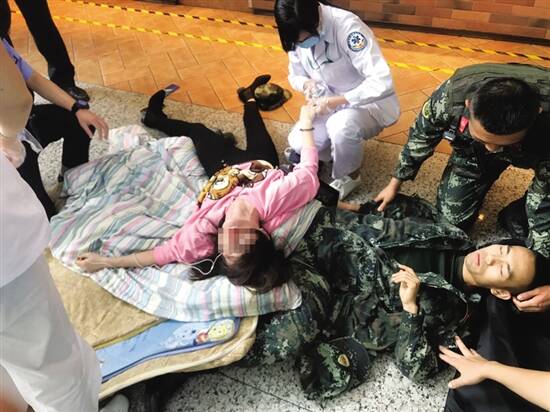 十米高空,是否能接托住近百斤下落的物体?这不是一道物理题,而是军人不顾自身安危接托坠楼女子的真实场景。 10月27日12时10分左右,广州白云国际机场T2航站楼41号门内自动扶梯旁,一女子因家庭纠纷,翻越围栏从距地面十余米的出发层跳楼轻生。正在机场内担任武装巡逻任务的武警广东总队第一支队哨兵叶梁成和陈崇鹏徒手协作下成功接住了坠楼女子。经送医诊查,坠楼女子没有受伤。两名哨兵身上多处挫伤,目前正在医院观察。 战士醒来第一句话:“救下来没?” 新快报记者了解到,当时正在执行任务的巡逻组发现情况后当即向值班室报告,并迅速展开处置,随后在抵达现场的值班干部指挥下,按预案封控现场、组织救援准备。该女子接到一通电话后情绪突然失控,纵身跳下。哨兵叶梁成和陈崇鹏瞬间箭步上前,瞄准落点双手迅速前伸,徒手协作下成功接住了坠楼女子。经送医诊查,坠楼女子没有受伤。 “人怎么样了?救下来没有?”这是叶梁成醒过来后,因咬破嘴唇、含着满嘴鲜血说的第一句话。因坠楼冲击力过大,被砸中面部的叶梁成当场昏迷数十秒,在现场战友们的呼喊下才渐渐清醒过来。经检查,叶梁成颈椎、腰椎、膝盖多处关节挫伤并伴有脑震荡。 托举救人的另一名战士陈崇鹏是应急组组长,在考虑到现场临时找来的床垫难以有效接托救援,果断决定与叶梁成两人协同、以手托举,事后检查手臂多处挫伤。现场的群众看到托举救援成功时纷纷夸赞叶梁成和陈崇鹏是新时代的“托举哥”。 “等会就直接抱了,伤就伤” 据了解,叶梁成在不久前的军事考核中达到了特三等级,在支队是名副其实的“特战精英”。陈崇鹏今年满八年服役期,即将脱下军装,但是“迷彩在身一分钟、不负誓言六十秒”一直是他挂在嘴边的话。 面对轻则受伤、重则有生命危险的救援,人性的本能是躲闪,而军人的本能却是举起双手托举。叶梁成和陈崇鹏坦言自己也有后怕,但是在那一刻,心中只有一个信念——救人。 新快报记者从视频中看到,高处的女子还没跳下之际,有个声音说:“等会就直接抱了,伤就伤。”新快报记者了解到,当时说这句话的正是武警战士陈崇鹏。没想到刚说完这句话,女子就直接跳下了。 白云机场也给武警广东省总队发去了感谢信,称赞“陈崇鹏、叶梁成面对紧急情况,临危不惧、挺身而出,不顾个人安危,拉起简易缓冲垫,及时接住跳楼旅客,成功避免了一起航站楼内人员严重伤亡事件的发生。”