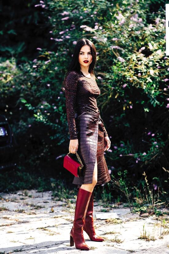 ▲皮质的动物压纹单品,即使大面积使用也不会过于抢眼,却能让造型搭配瞬间增添质感与趣味性。 |