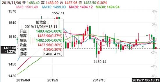 上周美联储10月FOMC议息落地,“鹰派降息”,贵金属跌落。昨日,在美元走强和市场风险偏好情绪持续升温的背景下,金价重挫逾30美元/盎司,创下逾一个月来最大单日跌幅。沪金主力合约跌破338.55元/克。国信期货分析师指出,美国10月ISM非制造业PMI为54.7,高于前值52.6和预期53.2,该乐观数据提振美元打压金银。截至发稿,金价报收1487.96美元/盎司, 分析人士指出,从技术面看,金价强势下跌,失守1489.00美元/盎司,并维持在这一水平下方,这暗示金价将再度回到看空轨道。1475美元/盎司附近的100日均线是短期关键支撑,假如跌破这一水平,可能推动金价跌至1455美元/盎司附近的10月低点。 但值得注意的是,近日,世界黄金协会2019年第三季度报告指出,2019年第三季度全球黄金需求小幅增长至1107.9吨,同比增长3%,主要由于强劲的黄金ETF流入抵消了其他较疲软的黄金需求。(涂波) 黄金