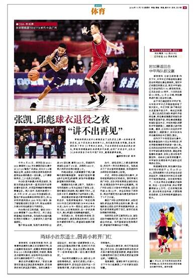 张凯、邱彪球衣退役之夜 “讲不出再见”