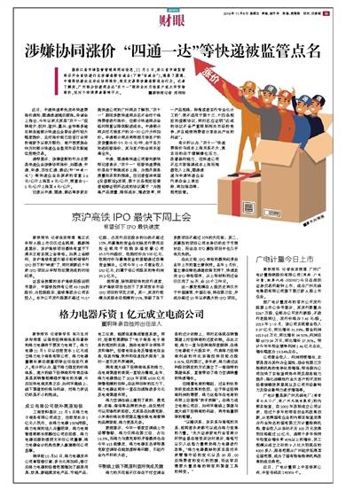 涉嫌协同涨价 “四通一达”等快递被监管点名