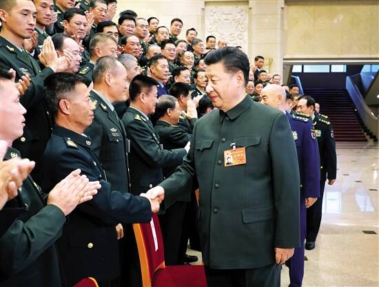 ■11月8日至10日,中央军委基层建设会议在北京召开。中共中央总书记、国家主席、中央军委主席习近平出席会议并发表重要讲话。这是习近平亲切接见会议代表。 新华社发 |