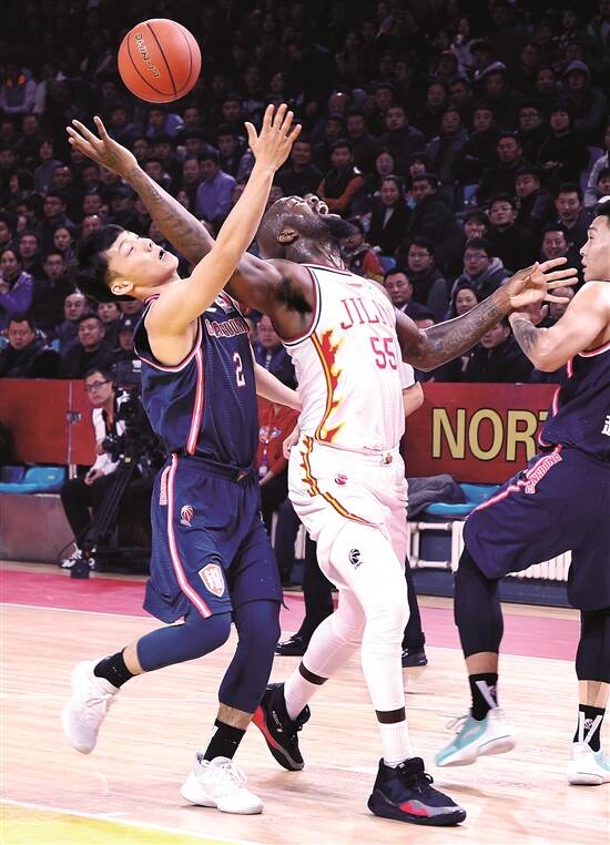 ■吉林队球员琼斯(右前)在比赛中进攻受阻。新华社发 |