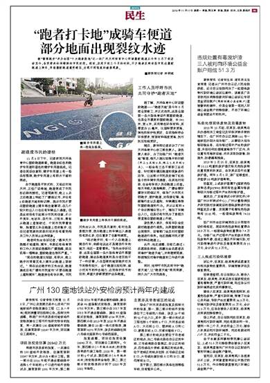 被“微博跑步”评为全国“十大跑者胜地”之一的广州天河体育中心环场塑胶跑道从今年8月下旬启动至今,备受前来休闲锻炼的市民欢迎。然而,启用不到三个月的时间,不少跑者反映有些市民在塑胶跑道上骑车,导致塑