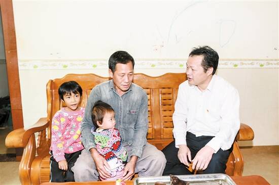 ■河源市扶贫局局长钟志坚到贫困户家中慰问解难题。 |
