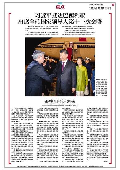 习近平抵达巴西利亚 出席金砖国家领导人第十一次会晤