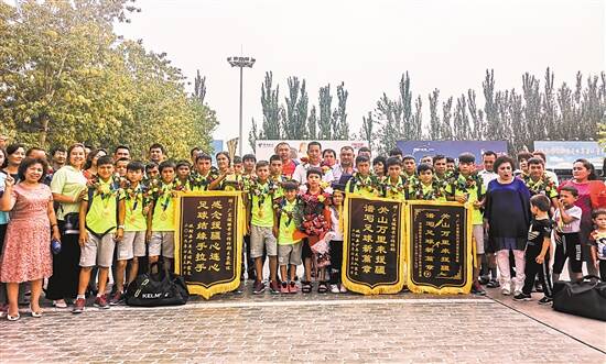 “关山万里来援疆 谱写足球新篇章”“感念援疆心连心 足球结缘手牵手”——新疆疏附县少年足球队的家长们向广东体育局足球运动中心援疆干部赠送的锦旗上这么写着。 |