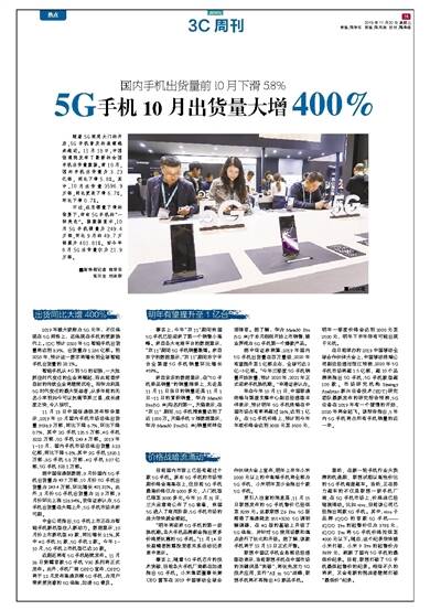 随着5G商用大门的开启,5G手机普及的浪潮越来越近。11月18日,中国信通院发布了最新的全国手机出货量数据。前10月,国内手机出货量为3.23亿部,同比下滑5.8%。其中,10月出货量3596.9