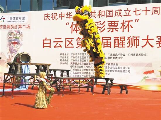 少年组获奖队出炉 据悉,白云区第八届醒狮大赛以“狮”承千年,舞动中华,醒世白云为主题,由白云区文化广电旅游体育局、广东省武术协会、广州市武术协会指导,区体育联合会和区武术协会主办,也得到体育彩票冠名支持。 本次大赛于11月13日正式启动,大赛分成少年组、青年组两个级别比赛。在11月13日进行的少年组预选赛及决赛当中,共计有21支15岁以下的少年队参赛,最终鸦岗南联国术龙狮团脱颖而出,以经典龙狮节目《醉青》勇夺少年组第一名,广州金沙洲凤冈永胜体育会、江村小学醒狮队,分别夺得少年组第二名、第三名。 青年组12队进决赛 而本届醒狮大赛青年组,则共计有32支队伍参赛。青年组先后举行了4场预选赛,11月16日、11月17日举行的是青年组最后2场预选赛。11月16日在石门街道鸦岗万民百货广场举行的预选赛当中,尤其以在多项竞赛中取得佳绩的鸦岗南联国术龙狮团最为突出,成功从当天8支队伍当中突围杀入决赛圈。11月17日,最后一场青年组的预选赛同样是在鸦岗万民百货广场举行,当天同样有8支队伍参赛。随着最后一场预选赛结束,本届白云区醒狮大赛青年组12支决赛队伍已全部产生,他们将于11月24日,在白云区石门街道鸦岗足球场角逐“狮王争霸”的至高荣誉。 体育彩票鼎力支持 据了解,醒狮是国家的非物质文化遗产项目,白云区石门街道醒狮文化有很深的历史和底蕴。体育彩票冠名支持在有悠久醒狮文化历史的石门街道举办醒狮大赛,对推动醒狮体育文化发展,弘扬中国传统文化精髓,引领中国的醒狮文化走向世界,都有着积极的意义。