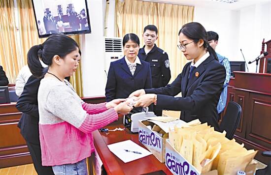 ■花都法院为111名工人集体领回被拖欠的工资。 通讯员供图 |