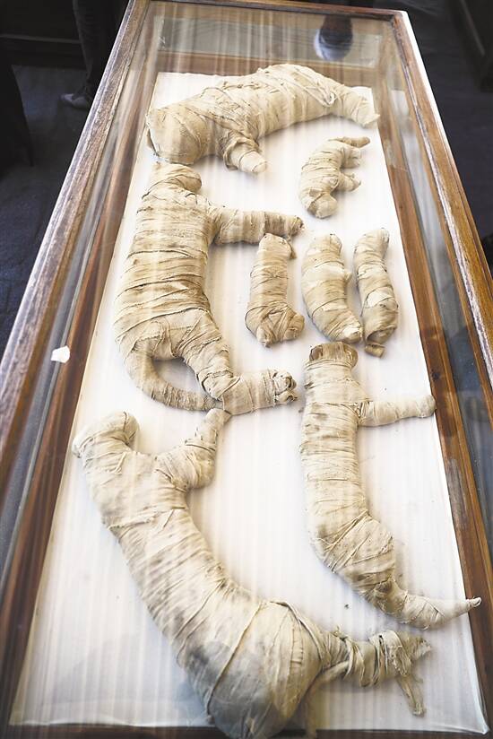 ■在埃及塞加拉地区新发现的动物木乃伊(右)和动物雕像。 新华社发 |