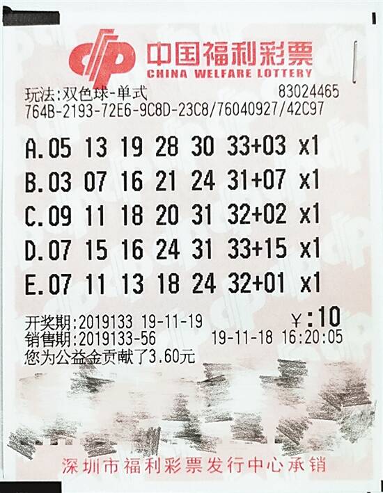 自选不中机选中 11月19日晚,第19133期双色球开奖,摇出中奖号码为:红球“03、07、16、21、24、31”;蓝球“07”。当期一等奖中出10注,其中6注为一等奖特别奖,单注奖金为1238万多元(含派奖500万元);另外4注为一等奖普惠奖,单注奖金为988万多元(含派奖250万元)。当期广东中出1注一等奖普惠奖,落户深圳市,中奖彩票是一张10元5注机选单式票,由宝安区松岗街道松岗社区红花村1号101铺的83024465投注站售出。 值得一提的是,由于上期普惠奖尚有500万元派奖奖金未送出,与当期500万元合并派发,令普惠奖派奖达到1000万元,每位中奖幸运儿的派奖奖金也翻番。 据了解,李先生是一位坚持购买福利彩票十几年的铁杆粉丝,平时各种彩票种类都会买一些,正所谓多渠道多中奖机会,对于购买双色球,李先生称基本都是自己选号比较多,每次投注花费几十块钱,一直没有中奖的他仍然保持良好的心态继续投注。“没想到这次心血来潮随手来了个10元机选票,却中了个大奖。”李先生开心地说道,真是有心栽花花不开,无心插柳柳成荫。 开启新生活篇章 第19133期双色球开奖当晚,李先生并没有关注中奖结果,直到11月20日,李先生到站点买彩票顺便查看中奖号码,才知道自己中奖了,而且由于正值12亿元派奖,还额外多拿了250万元奖金。得知自己中奖后,李先生非常高兴,直呼不敢相信。 “中大奖的信息我已经告诉我老婆了。”当被问及如何规划这笔奖金时,李先生尤为感慨地表示,因为户籍问题,原本近期打算把小孩送回老家读初中,不料,此次中得大奖将会给他的生活带来很大的变化。他准备买个房,主要用于解决小孩读书的问题,放下这块心头大石。他还表示,善有善报,今后将继续购买福利彩票,为公益作贡献的同时,也能收获快乐和惊喜。