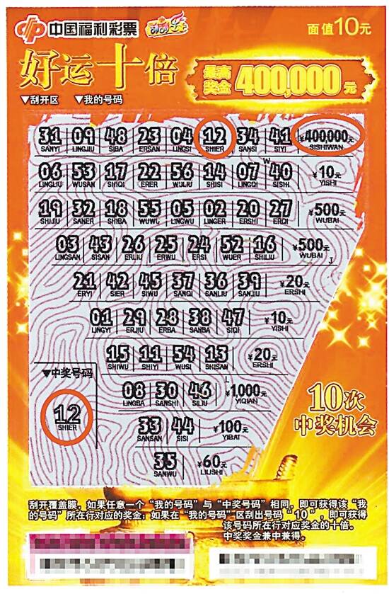 曾中500元刮彩专挑“中间票” 据陈先生介绍,他从女儿没出生就开始购买福利彩票,现在女儿就快中学毕业了。他平时除了与别人合资购买双色球外,就喜欢刮即开票。11月19日傍晚,他如往常一样下班就到家附近的投注站刮彩,向销售员要了平时最喜欢的“好运十倍”,先是在一包新开的即开票中间位置选了3张,刮开不中,又在刚才那3张的位置前后各要了一张。这下,引起了工作人员好奇,“难道这样选票中奖几率高点?”陈先生笑着回答,这个不全是,最主要看运气,他曾经用这样方法中过500元,后面就养成了专挑中间票的习惯,有时也在整包票的前后再各挑几张碰运气,偶尔也会一整包买下刮到过瘾。 第二次选的那两张彩票第一张也是没中,当刮开最后一张的第一行时,奇迹出现了,“我的号码”与“中奖号码”一样的数字“12”,右边对应的金额竟然是“¥400,000元”! 反复核对是否中奖怕“摆乌龙” 陈先生心里怦怦直跳,但看了旁边坐满其他彩民,他又马上按捺住自己的情绪。熟知游戏规则的他,知道自己这次是中了大奖,但为保险,他还是悄悄向销售员确认一番,确定无误后才拿着彩票回家。回家后又拿出彩票就着灯光来来回回看了几遍,怕自己眼花,出现了幻觉。“若是没有中‘摆乌龙’,来兑奖时岂不是尴尬?!”回想起当时的紧张心情,陈先生自己也笑了。