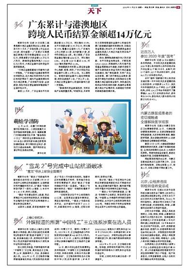 广东累计与港澳地区 跨境人民币结算金额超14万亿元