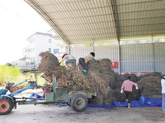 ■仙草采收入库。今年林石村种植仙草约130亩,收成后向村集体及贫困户进行分红。 |