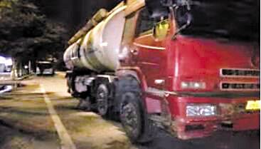■被告人伙同他人驾驶这辆槽罐车偷排泥浆,车底连接着一条直径约35厘米的塑料排污管。 受访者供图 |