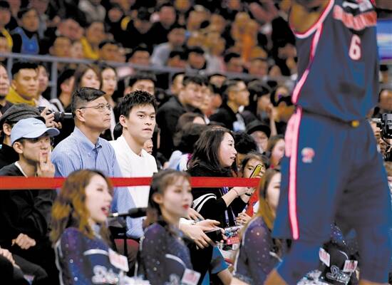 ■12月1日,北京首钢对阵广东宏远的比赛,孙杨也到场观战。 新华社发 |