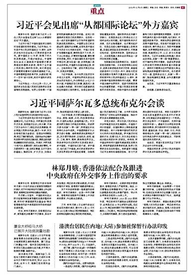 林郑月娥:香港依法配合及跟进 中央政府在外交事务上作出的要求