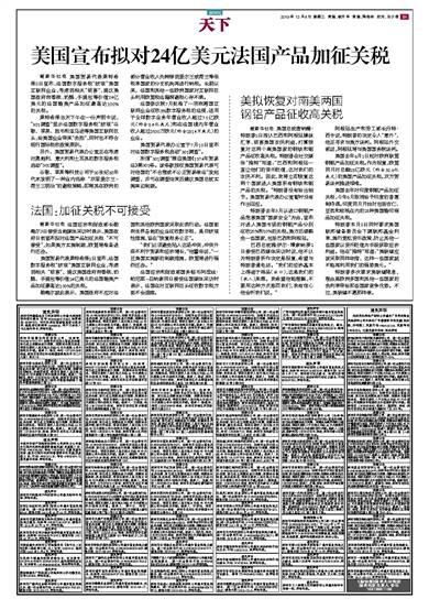 据新华社电 美国贸易代表莱特希泽2日宣布,法国数字服务税“歧视”美国互联网企业,考虑到相关“损害”,提议美国政府向香槟、奶酪、手提包等价值24亿美元的法国输美产品加征最高达100%的关税