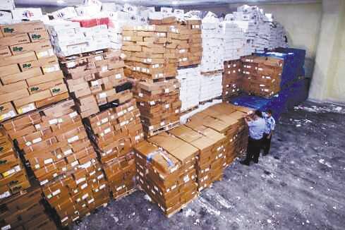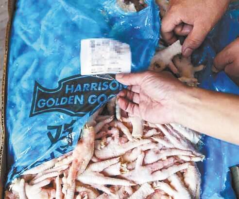 据了解,11月17日晚,根据海关总署缉私局水上缉私专项行动部署,拱北海关所属中山海关缉私分局水上缉私人员连续追击,在珠江口大铲岛西北面水域查获涉嫌走私冻品进境的“海安2266”货船,在该船上抓获涉案船员3名,现场查扣40尺集装箱32个,每柜装有鸡爪等冻品共计847吨。 侦查人员介绍,上述涉案冻品涉嫌从珠海市桂山岛附近水面一艘趸船过驳,准备运往内地销售。该批冻品均没有进境动植物检疫许可证和输出国家或者地区官方机构出具的相关证书等,据外包装显示看,部分冻品来自我国列为禁止进口的动物疫病流行国家和地区。 ■堆积如山的走私冻品。通讯员供图