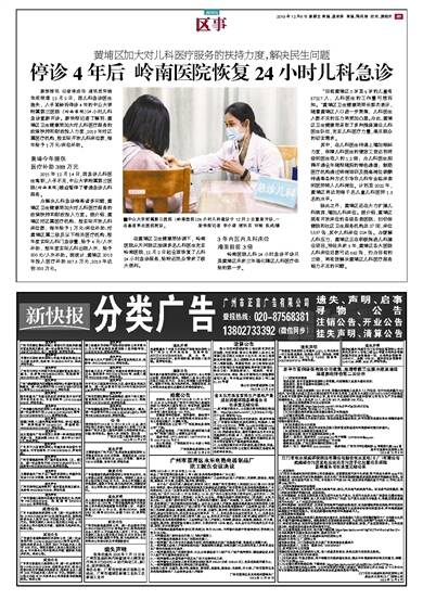 新快报讯 记者李应华 通讯员许婉 张成报道 12月2日,因儿科急诊医生流失,人手紧缺而停诊4年的中山大学附属第三医院(岭南医院)24小时儿科急诊重新开诊。新快报记者了解到,黄埔区卫生健康局加大对儿