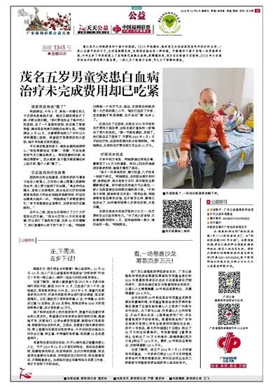 茂名五岁男童突患白血病治疗未完成费用却已吃紧