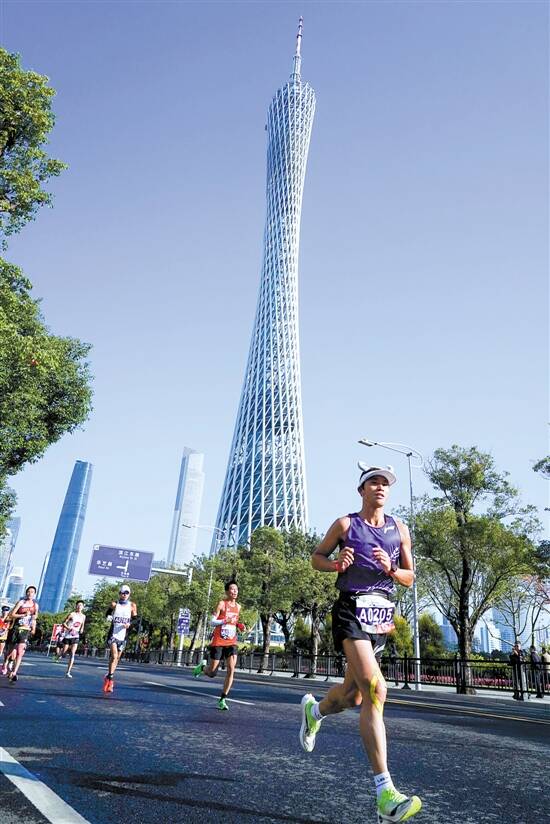 ■2019广州马拉松开跑,天气一片晴好,“广州蓝”染遍整个天幕。 新快报记者 孙毅 实习生 何松轩/摄(资料图) |