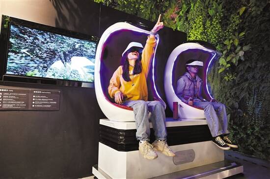 ■观众在广州纪录片研究展示中心进行VR互动体验。 新快报记者 夏世焱/摄 |